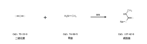 1.通过二硫化碳和甲胺合成威百亩,收率约98%;
