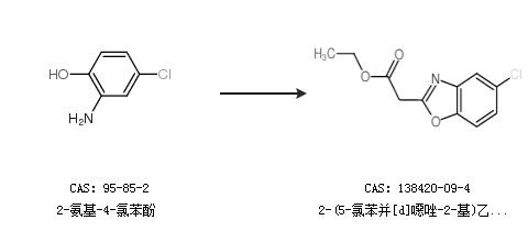 1.通过2-氨基-4-氯苯酚合成2-(5-氯苯并[d]噁唑-2-基)乙酸乙酯