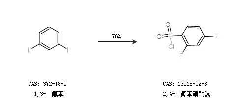 1.通过1,3-二氟苯合成2,4-二氟苯磺酰氯,收率约76%;
