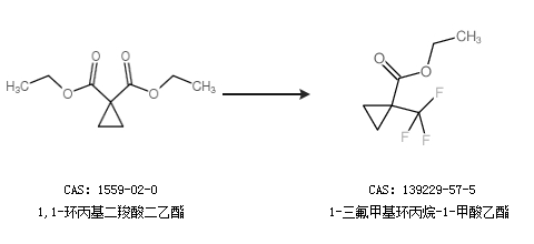 2.通过1,1-环丙基二羧酸二乙酯合成1-三氟甲基环丙烷-1-甲酸乙酯