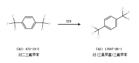 2.通过对二三氟甲苯合成对(三氯甲基)三氟甲苯,收率约32%;