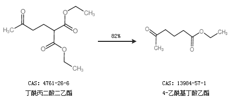 1.通过丁酰丙二酸二乙酯合成4-乙酰基丁酸乙酯,收率约82%;