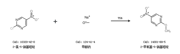 1.通过2-氯-5-硝基嘧啶和甲醇钠合成2-甲氧基-5-硝基嘧啶,收率约75%;