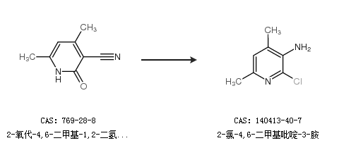 2.通过2-氧代-4,6-二甲基-1,2-二氢吡啶-3-甲腈合成2-氯-4,6-二甲基吡啶-3-胺