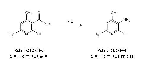 1.通过2-氯-4,6-二甲基烟酰胺合成2-氯-4,6-二甲基吡啶-3-胺,收率约74%;