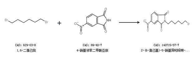 1.通过1,6-二溴己烷和4-硝基邻苯二甲酰亚胺合成2-(6-溴己基)-5-硝基异吲哚啉-1,3-二酮