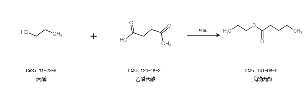 1.通过丙醇和乙酰丙酸合成戊酸丙酯,收率约90%;