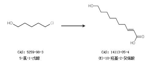 2.通过5-氯-1-戊醇合成(E)-10-羟基-2-癸烯酸