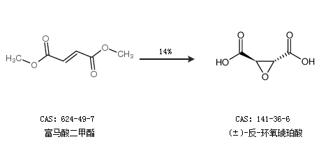 2.通过富马酸二甲酯合成(±)-反-环氧琥珀酸,收率约14%;