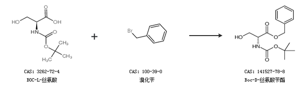 1.通过BOC-L-丝氨酸和溴化苄合成Boc-D-丝氨酸苄酯