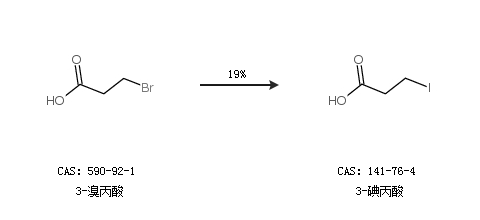 1.通过3-溴丙酸合成3-碘丙酸,收率约19%;