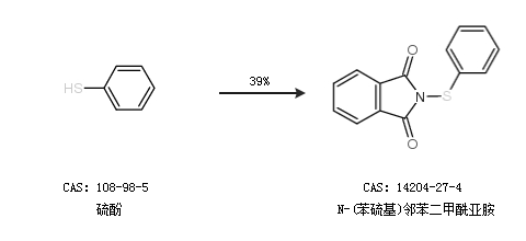 2.通过硫酚合成N-(苯硫基)邻苯二甲酰亚胺,收率约39%;