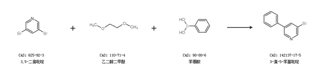2.通过3,5-二溴吡啶、乙二醇二甲醚和苯硼酸合成3-溴-5-苯基吡啶