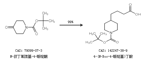 2.通过N-叔丁氧羰基-4-哌啶酮合成4-(N-Boc-4-哌啶基)丁酸,收率约99%;