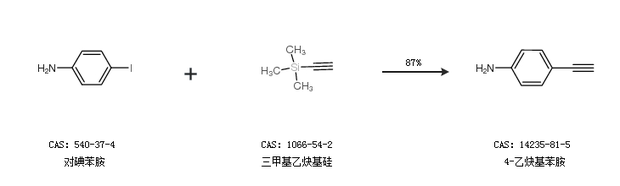 2.通过对碘苯胺和三甲基乙炔基硅合成4-乙炔基苯胺,收率约87%;