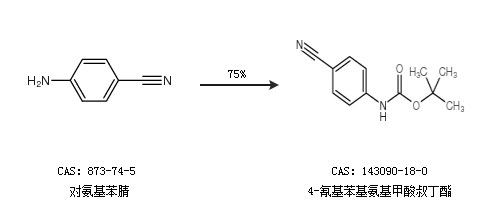 1.通过对氨基苯腈合成4-氰基苯基氨基甲酸叔丁酯,收率约75%;