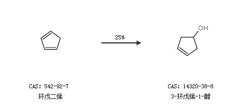 1.通过环戊二烯合成3-环戊烯-1-醇,收率约25%;