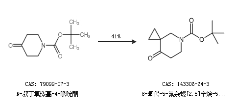 2.通过N-叔丁氧羰基-4-哌啶酮合成8-氧代-5-氮杂螺[2.5]辛烷-5-羧酸叔丁酯,收率约41%;