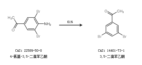 1.通过4-氨基-3,5-二溴苯乙酮合成3,5-二溴苯乙酮,收率约61%;