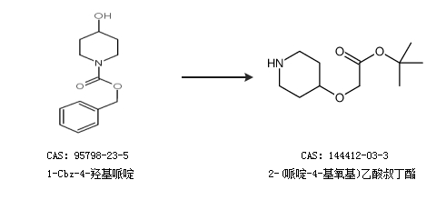 2.通过1-Cbz-4-羟基哌啶合成2-(哌啶-4-基氧基)乙酸叔丁酯