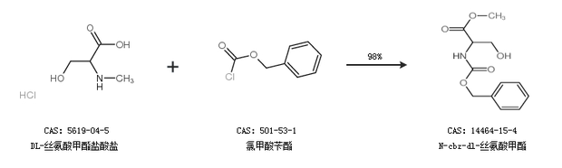 1.通过DL-丝氨酸甲酯盐酸盐和氯甲酸苄酯合成N-cbz-dl-丝氨酸甲酯,收率约98%;