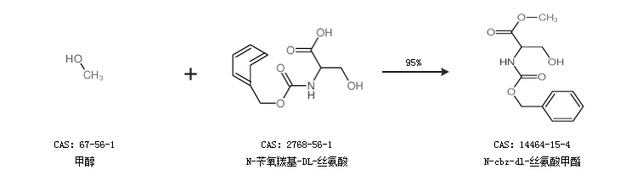 2.通过甲醇和N-苄氧羰基-DL-丝氨酸合成N-cbz-dl-丝氨酸甲酯,收率约95%;