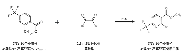1.通过2-氧代-6-(三氟甲基)-1,2-二氢吡啶-3-羧酸甲酯和草酰溴合成2-溴-6-(三氟甲基)烟酸甲酯,收率约54%;