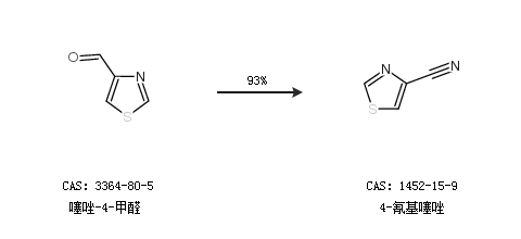 1.通过噻唑-4-甲醛合成4-氰基噻唑,收率约93%;