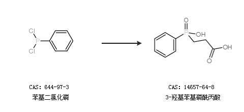 1.通过苯基二氯化磷和丙烯酸合成3-羟基苯基磷酰丙酸,收率约94%;