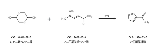2.通过1,4-二硫-2,5-二醇和1-二甲基呋喃-1-3-酮合成3-乙酰基噻吩,收率约58%;