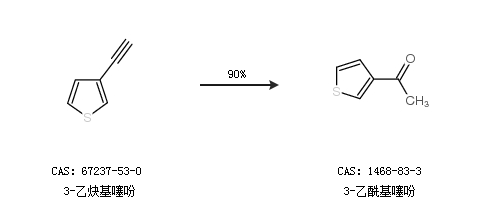 1.通过3-乙炔基噻吩合成3-乙酰基噻吩,收率约90%;