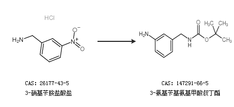 1.通过3-硝基苄胺盐酸盐合成3-氨基苄基氨基甲酸叔丁酯