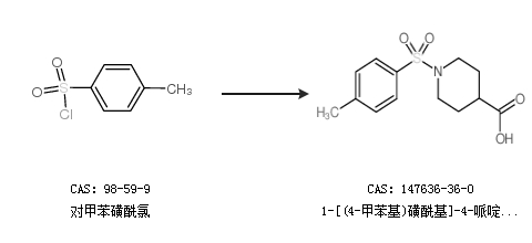 2.通过对甲苯磺酰氯合成1-[(4-甲苯基)磺酰基]-4-哌啶甲酸