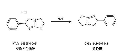 1.通过盐酸左旋咪唑合成保松噻,收率约97%;