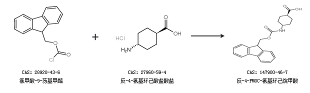 1.通过氯甲酸-9-芴基甲酯和反-4-氨基环己酸盐酸盐合成反-4-FMOC-氨基环己烷甲酸