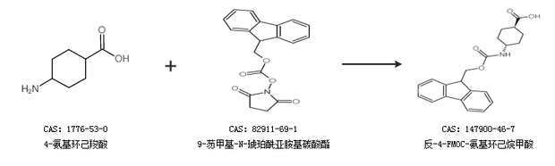 2.通过4-氨基环己羧酸和9-芴甲基-N-琥珀酰亚胺基碳酸酯合成反-4-FMOC-氨基环己烷甲酸