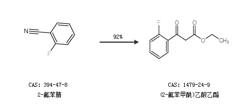 1.通过2-氟苯腈合成(2-氟苯甲酰)乙酸乙酯,收率约92%;