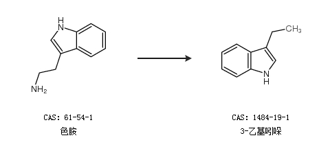 1.通过3-乙酰吲哚合成3-乙基吲哚,收率约60%;