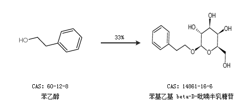 1.通过苯乙醇合成苯基乙基 beta-D-吡喃半乳糖苷,收率约33%;