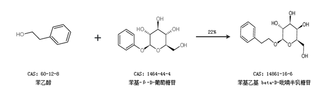 2.通过苯乙醇和苯基-β-D-葡萄糖苷合成苯基乙基 beta-D-吡喃半乳糖苷,收率约22%;