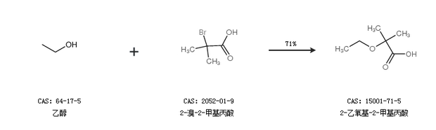 2.通过乙醇和2-溴-2-甲基丙酸合成2-乙氧基-2-甲基丙酸,收率约71%;