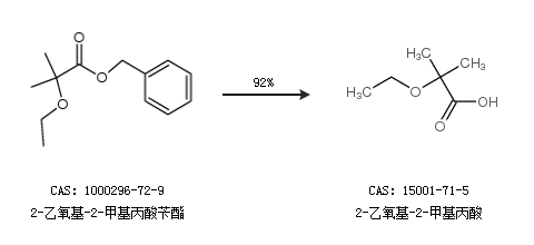 1.通过2-乙氧基-2-甲基丙酸苄酯合成2-乙氧基-2-甲基丙酸,收率约92%;