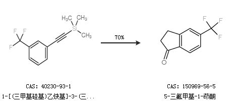 2.通过1-[(三甲基硅基)乙炔基]-3-(三氟甲基)苯合成5-三氟甲基-1-茚酮,收率约70%;