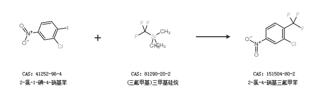 1.通过2-氯-1-碘-4-硝基苯和(三氟甲基)三甲基硅烷合成2-氯-4-硝基三氟甲苯