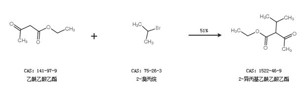 1.通过乙酰乙酸乙酯和2-溴丙烷合成2-异丙基乙酰乙酸乙酯,收率约51%;