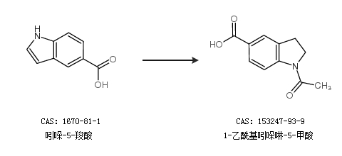 2.通过吲哚-5-羧酸合成1-乙酰基吲哚啉-5-甲酸