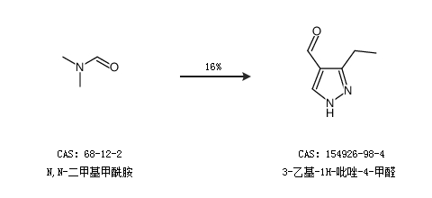 1.通过N,N-二甲基甲酰胺合成3-乙基-1H-吡唑-4-甲醛,收率约16%;