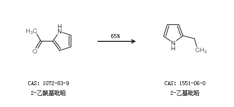 1.通过2-乙酰基吡咯合成2-乙基吡咯,收率约65%;