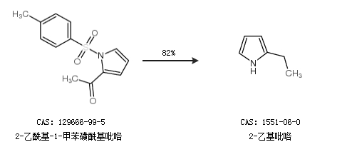 2.通过2-乙酰基-1-甲苯磺酰基吡咯合成2-乙基吡咯,收率约82%;