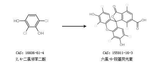 1.通过2,4-二氯邻苯二酚合成六氯-6-羧基荧光素